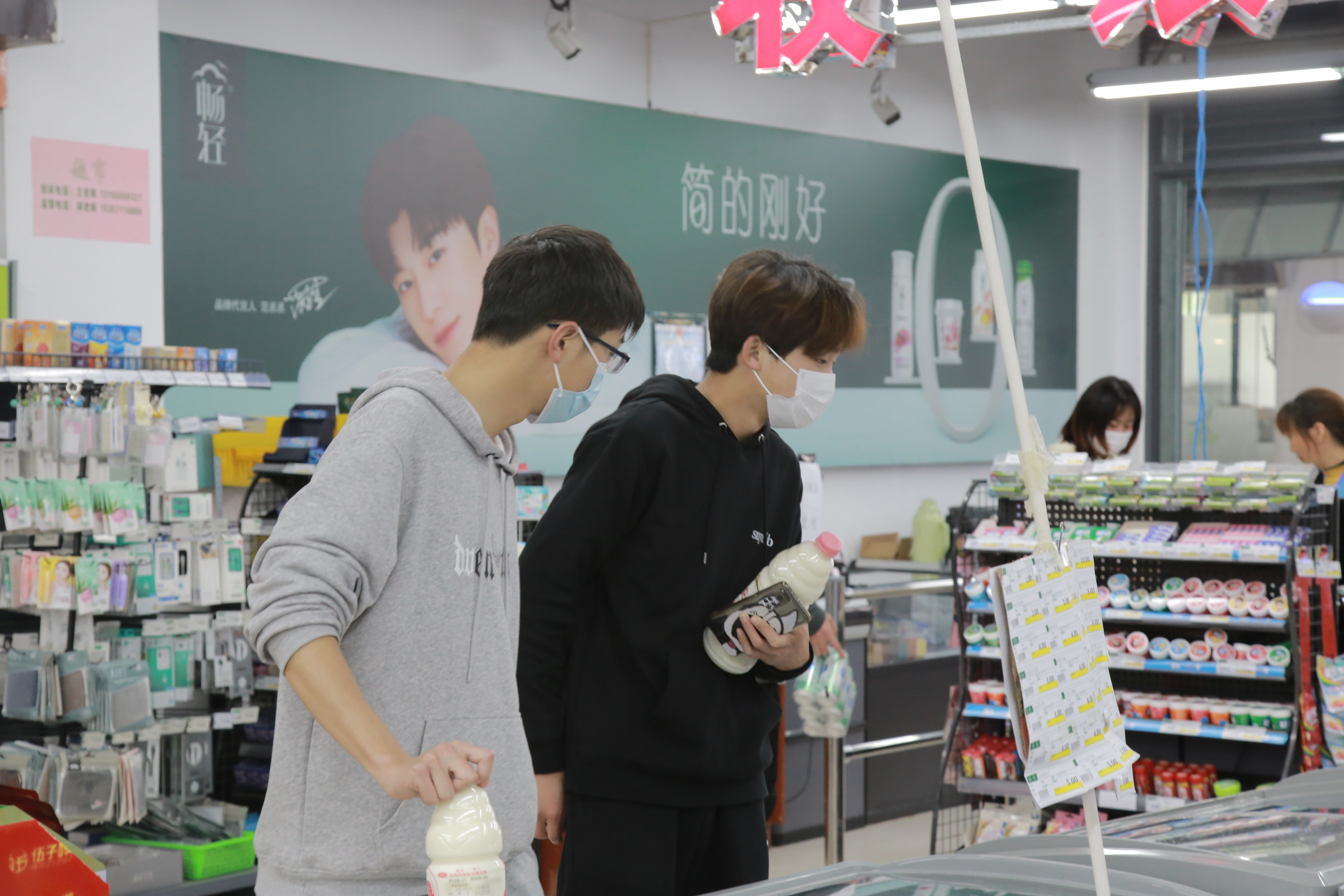 在校园超市,各种零食、生活用品、文具用品、常用百货准备充足,生鲜专区还摆满了草莓、香橙、苹果等新鲜水果,同学们有序采购,为日常生活储蓄能量。