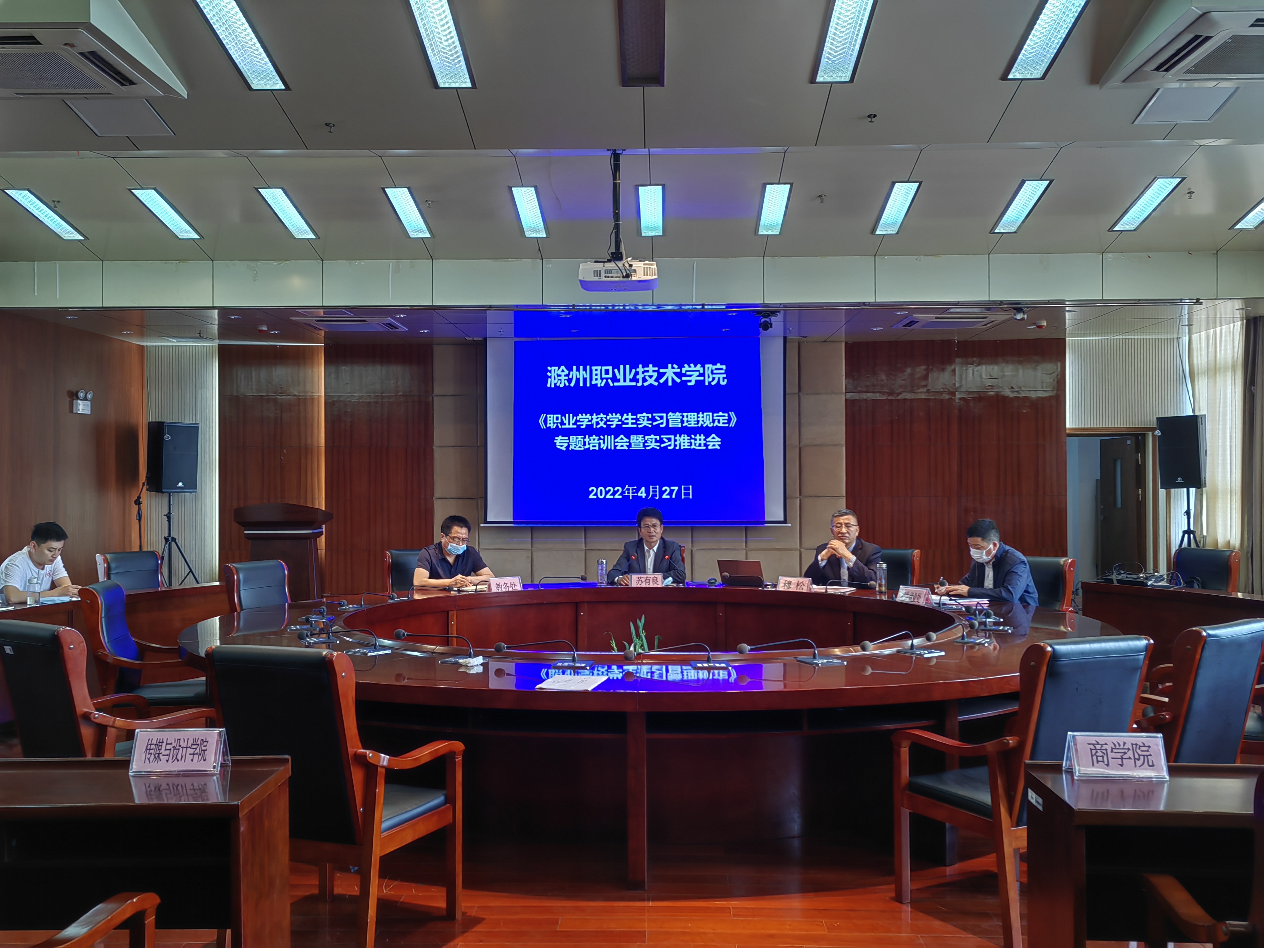 为深入贯彻教育部等八部门联合修订印发的《职业学校学生实习管理规定》(以下简称《规定》),切实规范Beat365学生实习管理工作,深刻理解《规定》精神,积极落实《规定》要求,4月27日上午,Beat365组织教务处、实验实训中心、招生就业处相关工作人员及各二级学院实习指导教师代表在综合楼11楼会议室共同收看教育部召开的《职业学校学生实习管理规定》线上专题培训会,党委委员、副校长苏有良,校长助理、招生就业处处长穆松出席会议。