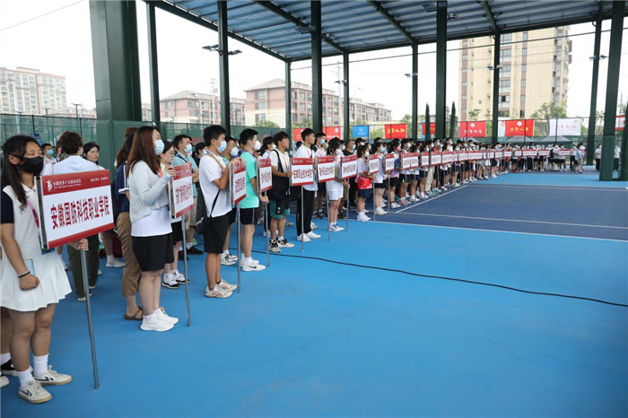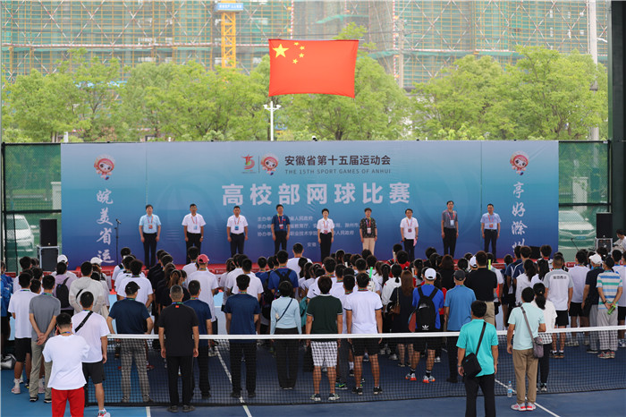 7月18日上午,安徽省第十五届运动会高校部网球比赛开赛仪式在天长市网球中心举行。