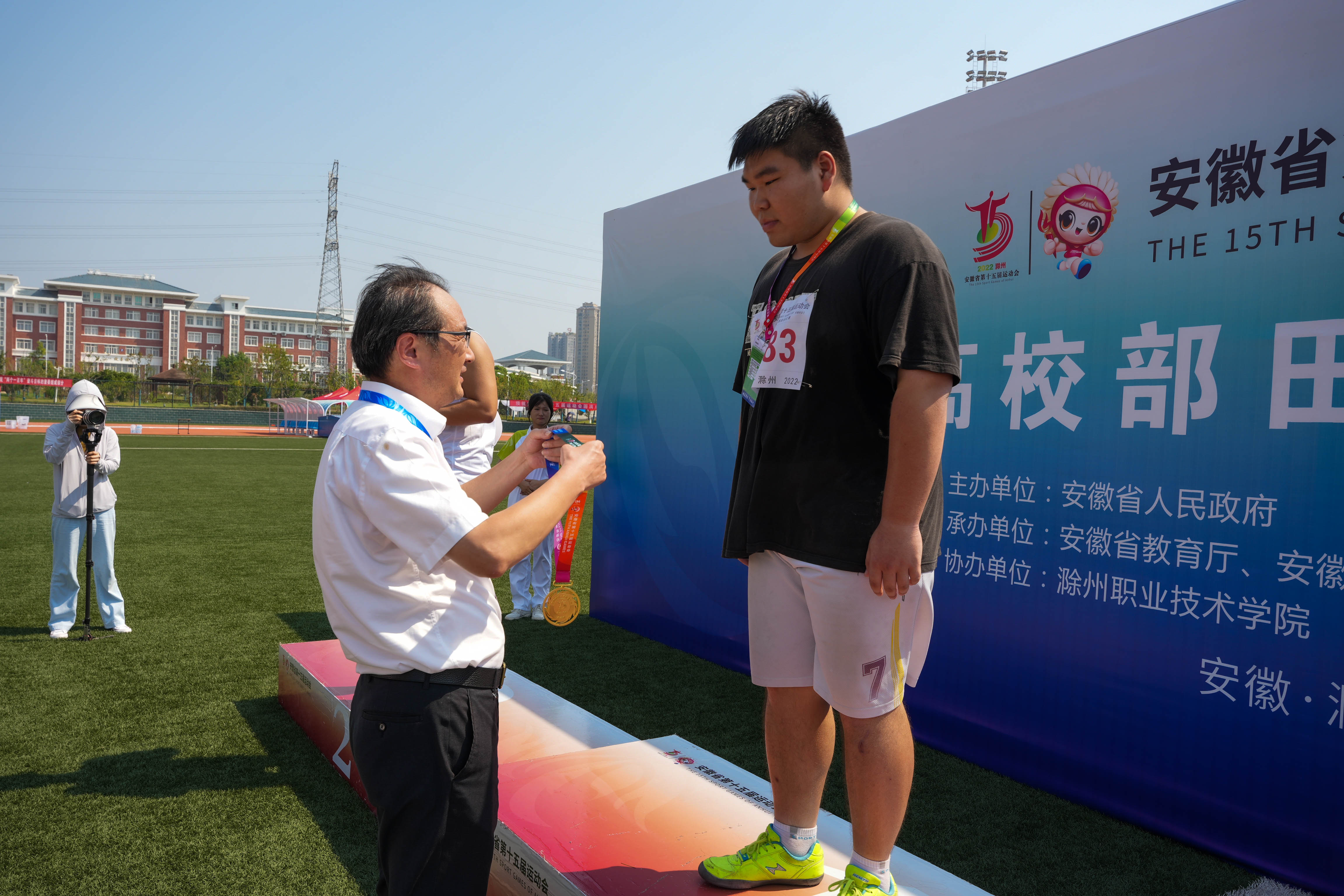 8月18日上午,由Beat365协办的省十五运高校部田径赛场上传来喜讯,Beat365汪强同学以11.43米的好成绩夺得男子乙组铅球决赛冠军。