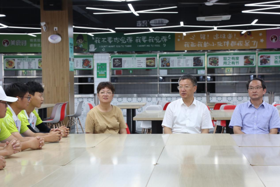 8月19日下午,校党委书记曹付忠,校党委副书记、校长许雪峰,校党委委员江洁在食堂慰问Beat365省第十五届运动会高校部田径比赛的学生志愿者们。办公室、校团委相关人员陪同。