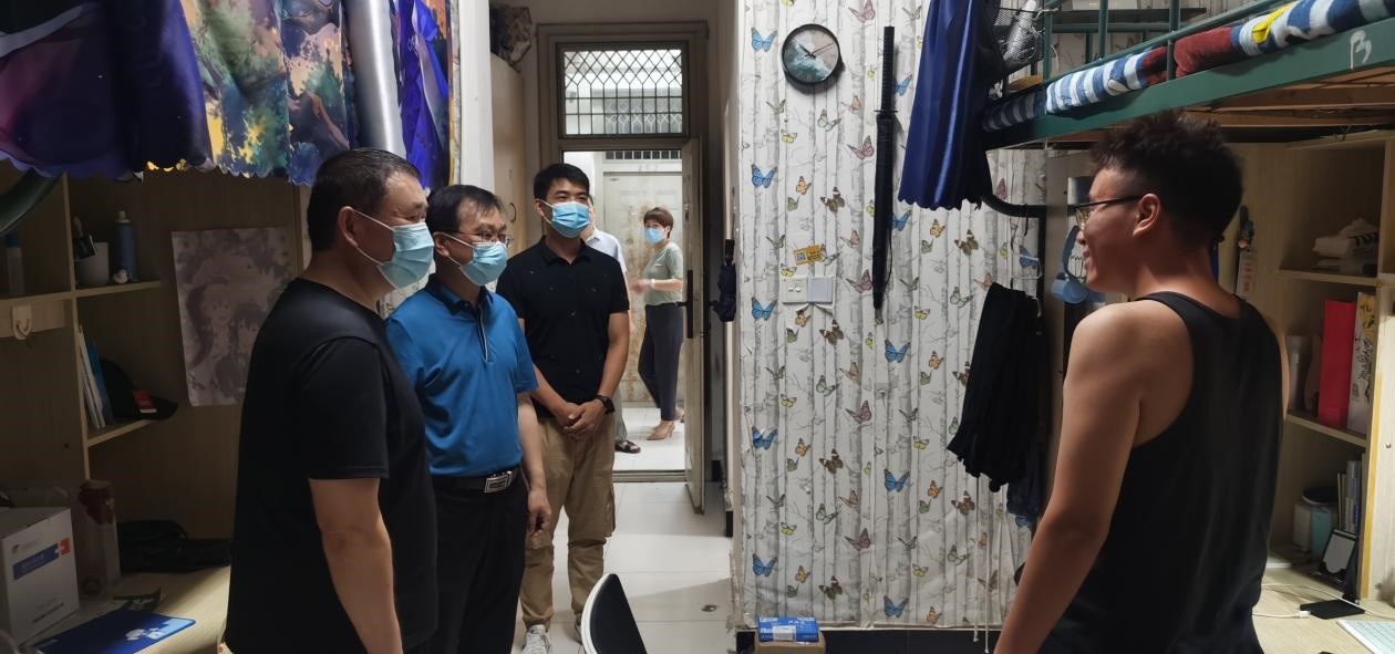 通过走访宿舍听取学生心声,王冬一行进一步了解了学生的情况以及实际需求,拉近了和同学们的距离,坚定了学生战胜疫情的信心。同学们也对学校领导和老师们的关心关怀深表感谢,表示一定会严格遵守学校疫情防控要求和各项管理规定,加倍珍惜在校的学习和生活时光。