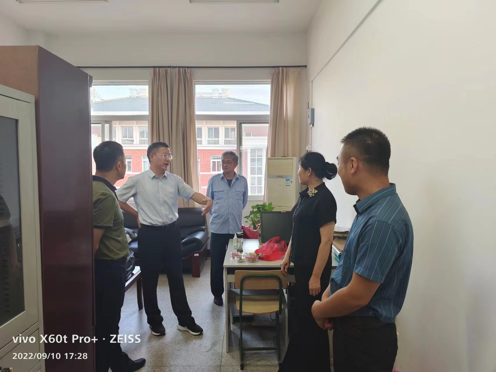 曹付忠一行对在岗教职工驻校工作、坚守岗位、勇担重任的精神致以崇高的敬意。曹付忠仔细询问教职工值班期间的生活保障情况,同时叮嘱大家做好个人防护,注意劳逸结合,保持良好的工作状态和精神状态,保障好自身健康与安全。校领导亲切的话语和真诚的关怀让坚守一线的教职工倍感温暖,并表示将一如既往地履职尽责、担当奉献,为守好校园疫情防控底线,保障教育教学工作平稳运行贡献自己的力量。