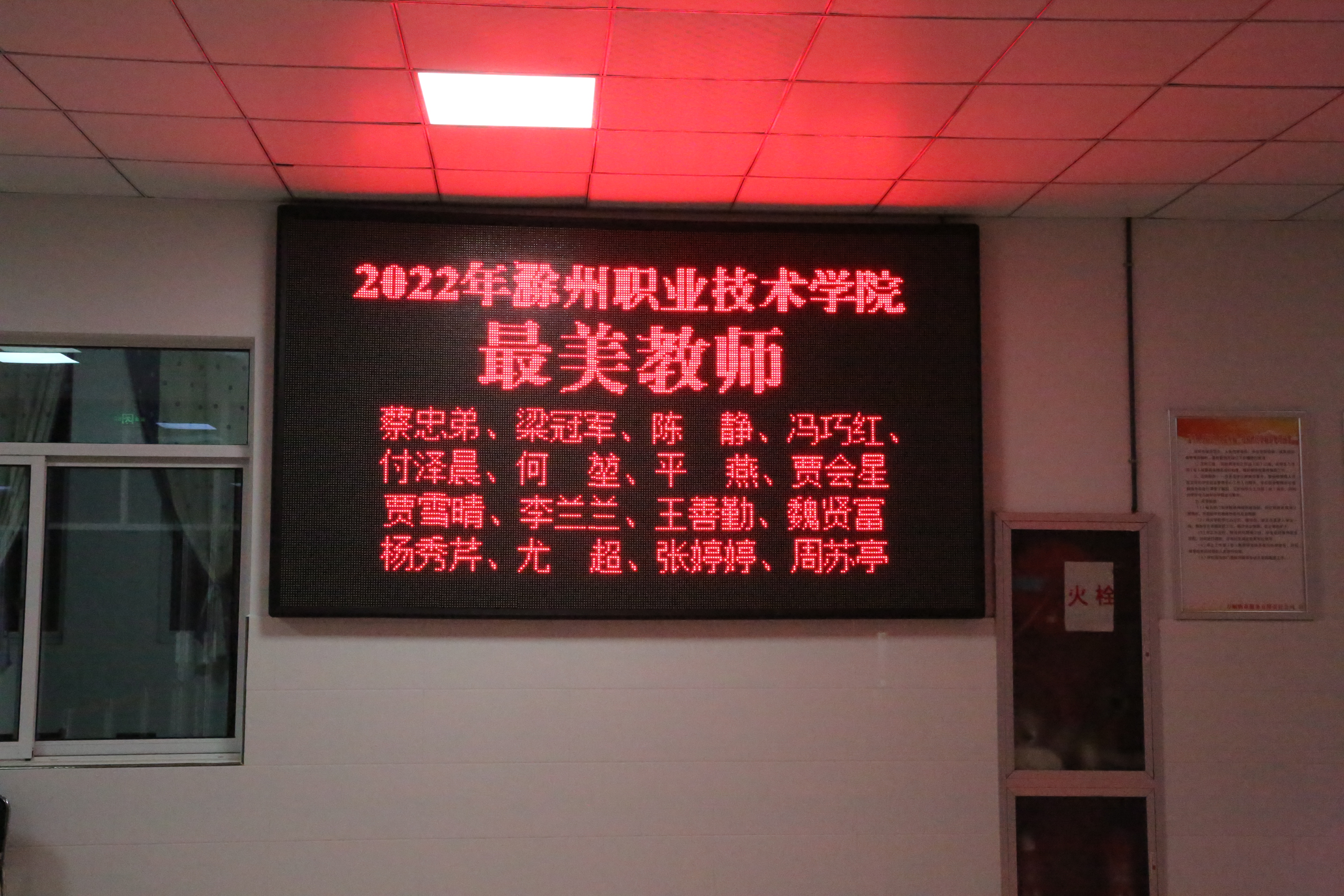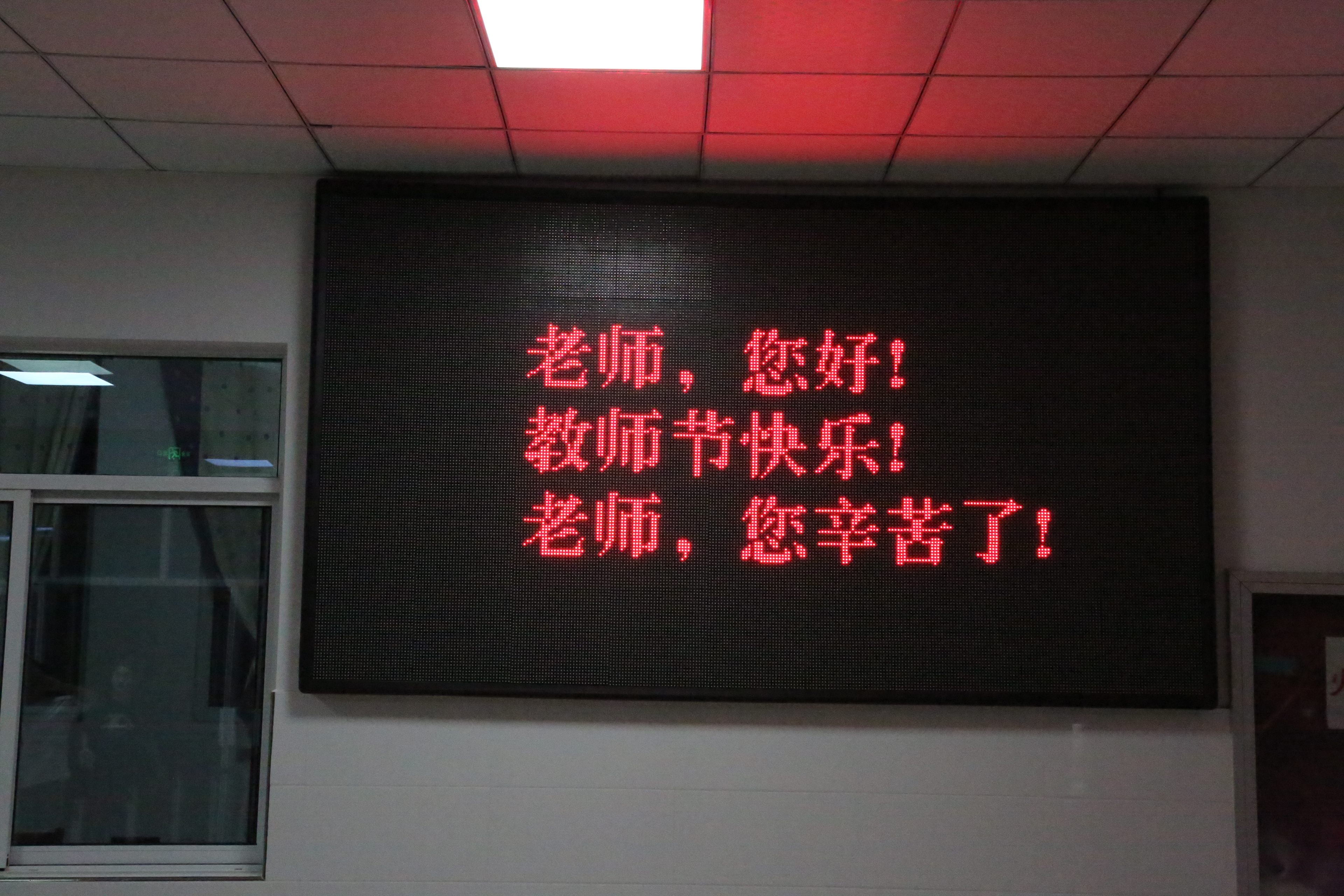 9月10日全天学校通过综合楼、食堂、宿舍楼的电子显示屏滚动播放优秀教师事迹与节日祝福。晚上学校广场的音乐喷泉、楼宇轮廓灯流光溢彩,向全体教师致以节日的敬意。