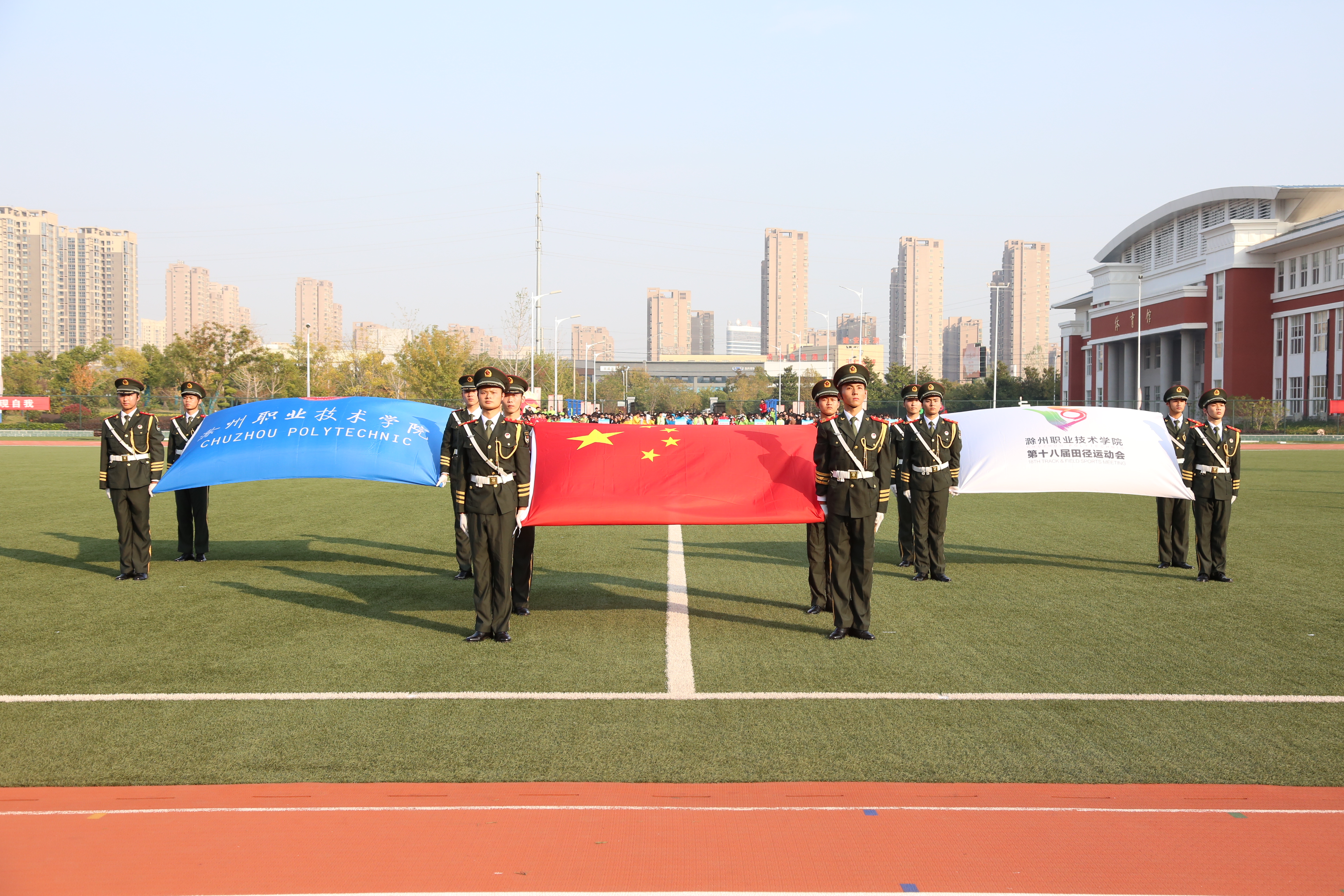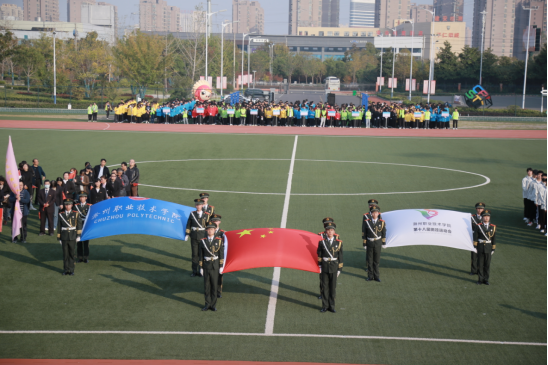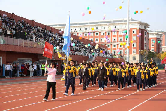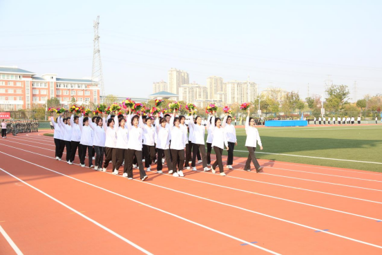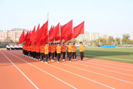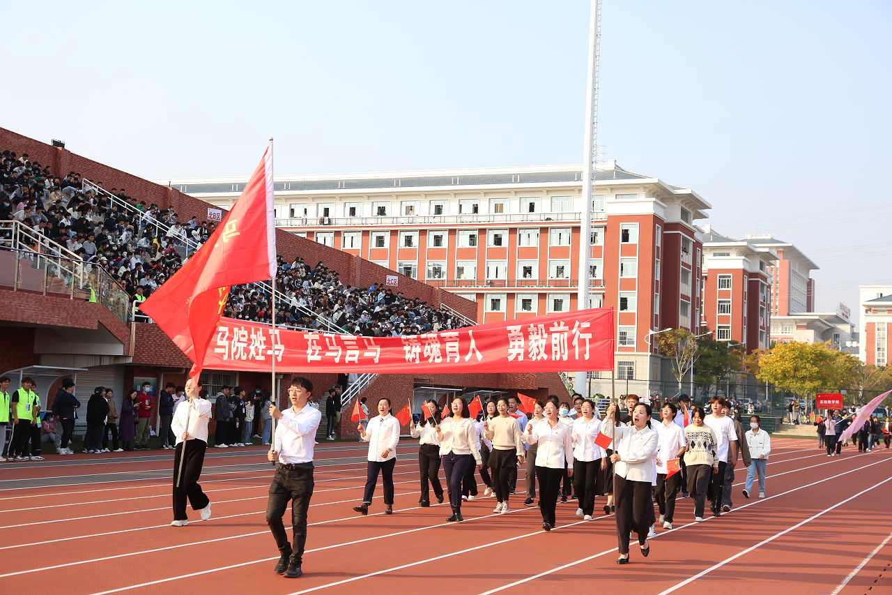 伴随着激昂的《运动员进行曲》,国旗护卫队、校国旗队、会徽会旗队、红旗方队、鲜花方队,裁判员方队、各二级学院和教职工代表组成的队伍依次入场,他们以昂扬的姿态,喊着嘹亮的口号,迈着整齐稳重、铿锵有力的步伐走过主席台。