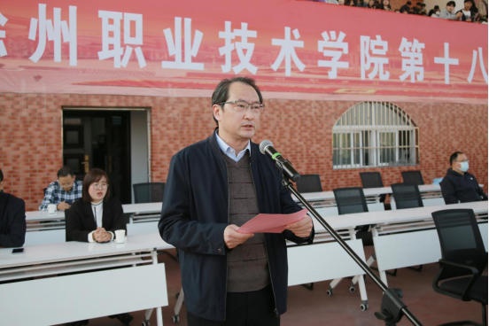 庄严的升国旗仪式后,许雪峰在致辞中代表学校向悉心筹备本届运动会的师生员工表示诚挚的谢意,向全体运动员、裁判员致以亲切的问候和美好的祝愿。