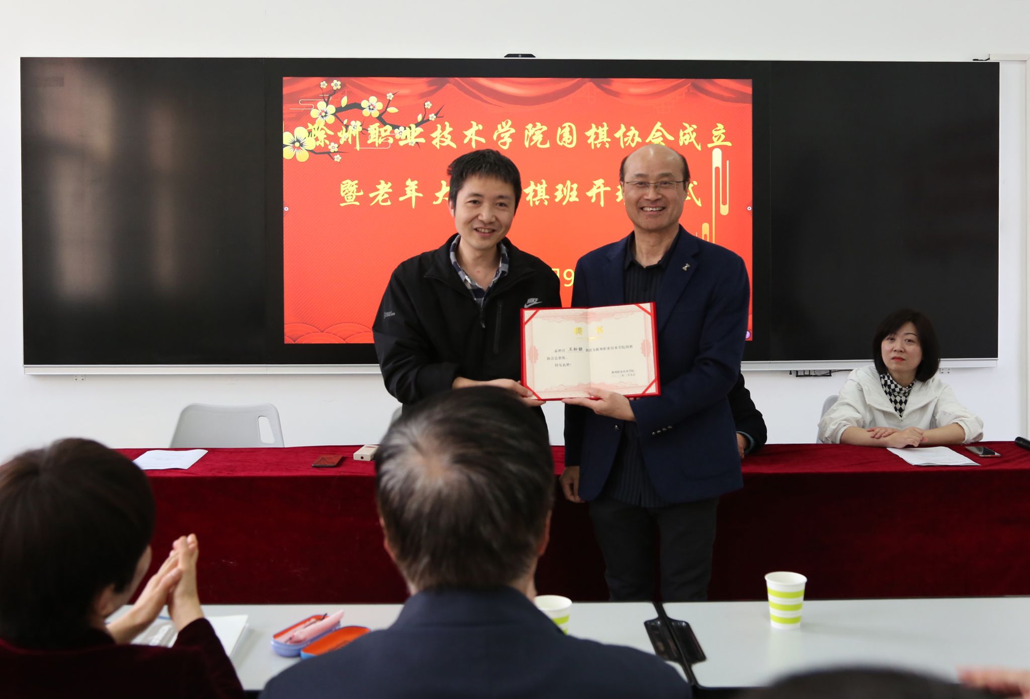 李平权代表学校发表了热情洋溢的讲话,他首先对各位领导、会员及老年朋友们对校围棋协会筹建给予的支持和指导表达了衷心的感谢。接着,李平权介绍了围棋协会成立的背景、初心和意义,他指出:“围棋是中华民族传统文化中的瑰宝,围棋有益于开发智力、激发创造力和想象力。学校成立围棋协会的目的,就是要弘扬传统文化,传承中华智慧,丰富文化生活,发展围棋运动。成立围棋协会圆了一批滁职人的心愿,依托协会为载体宣传推广围棋文化,为校内外围棋爱好者“以棋会友”搭建平台,努力实现“棋艺长起来、人品立起来、资源引进来、品牌建起来”的发展目标。