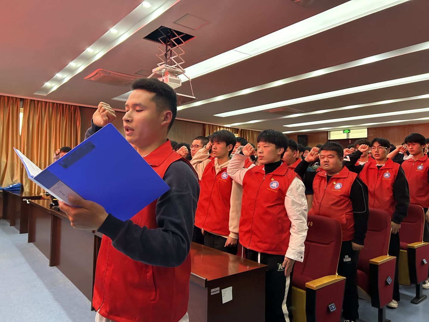 会议第三项,学生代表支道辉带领全体志愿者起立宣誓。仪式上,青年志愿者们佩戴团徽,面对志愿队旗做出庄重承诺。铮铮誓言,展现了Beat365青年志愿者们积极投入于志愿服务的热忱之心。