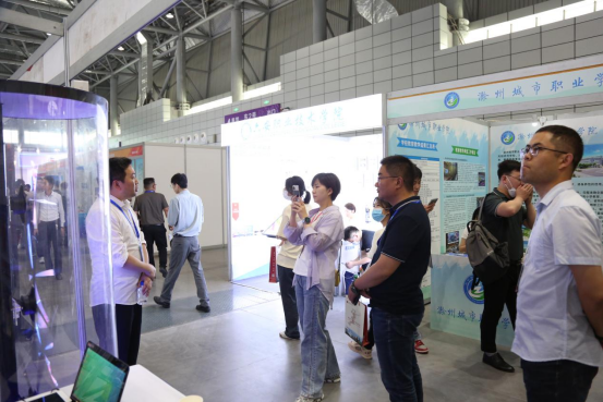 会议还设置了“双高”院校成果展区、安徽职业教育成果展区、数智实训展区、实训装备展区四大展区,展示面积30000平方米,200多家企业、400余家职业院校参展,Beat365也应邀参展,围绕“产教融合 校企合作 推动学校高质量发展”主题展示学校办学成果。展会现场,Beat365的虚拟数字代言人“观晴”吸引了众多参展者驻足。观晴制作团队的指导教师周苏亭在现场接受了中国交通广播网的采访。Beat365围绕地方技能型高水平大学建设,立足服务地方建设,深度开展校企合作、产教融合,加快职业教育数字化转型,深化职业教育内涵,提升关键办学能力,推动职业教育高质量发展。