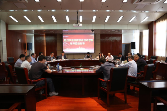 5月23日上午,安徽职业技术学院党委副书记、校长盛鹏一行来Beat365,就校企合作、实训室建设、体育大赛管理等方面进行调研交流。Beat365党委副书记、校长许雪峰,党委委员、副校长苏有良陪同交流。