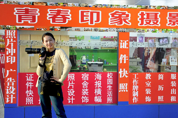在校期间,马莹利用课余时间到影楼做兼职,主要学习后期设计、摄影类的工作,“所以我选择的项目是摄影摄像这个行业。而我们大学生开店,一方面可充分利用高校的学生顾客资源;另一方面,由于熟悉同龄人的消费习惯,因此入门较为容易。”马莹说道。
