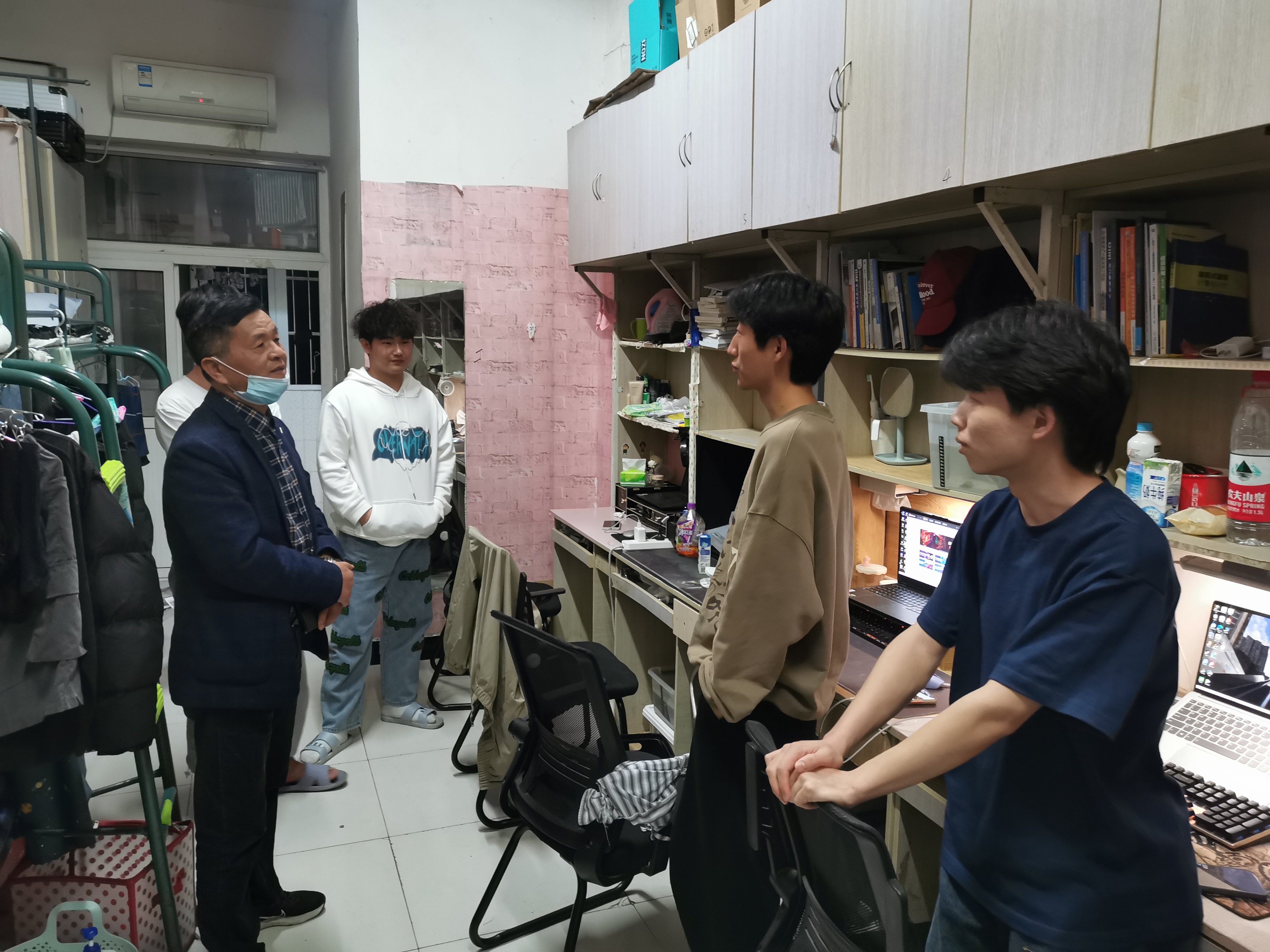 走访期间朱永祥在宿舍与学生进行亲切交流,提醒学生做好个人防护及安全措施,做到防疫不松懈的同时也要保持学习的积极性,同时问询了同学们疫情期间授课教师们线上线下教学情况;了解同学们的学习情况及学习中遇到的困难,确保学习质量不掉线。在与学生交谈中,朱永祥就建筑行业发展前景及相关专业领域给同学们做了一定的讲解。