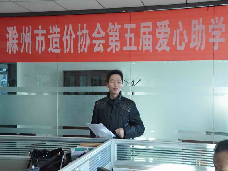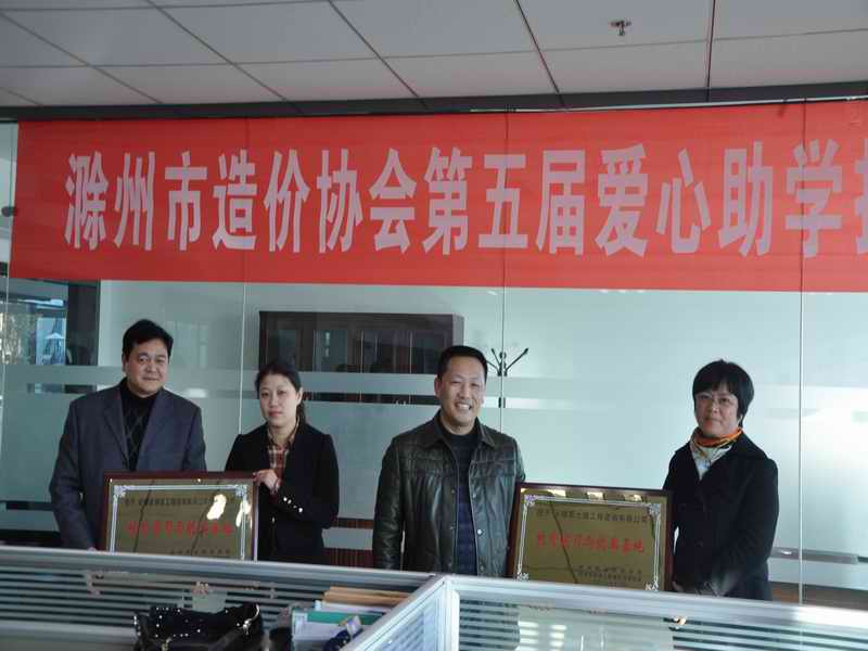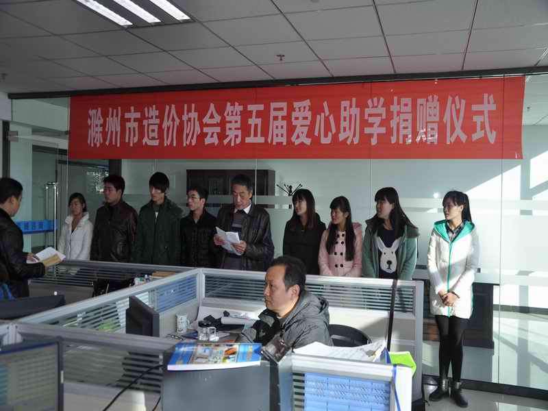 2013年11月29日下午三时,市造价协会第五届爱心资助工程造价专业大学生捐赠活动在安徽佳诚工程咨询有限公司隆重举行。Beat365唯一官方网站副院长江洁、副院长汪上、市建委党组成员、纪检组长夏庆松、市城建委科技发展科科长徐宗琦、市造价站站长、市造价协会会长张正金、副站长史正海、市所有造价咨询行业负责人以及土木系主任朱永祥、系书记刘文元、系副主任张国富、系副书记陈兴友和受捐助的36名学生出席捐赠仪式,共同见证这一温情时刻。大会由张正金主持,会议内容共分五项: 一、捐赠企业代表安徽佳城工程咨询有限公司董事长徐义祥致辞;二、张正金介绍了我市造价咨询行业发展现状,鼓励学生毕业后积极投入到滁州建设中;三、各企业代表向造价专业的36名大学生进行捐助;四、江洁代表学院向安徽百士德工程咨询有限公司授牌;五、汪上讲话。在讲话中汪上首先代表学院衷心感谢市建委、市造价站和爱心企业的资助,然后介绍了学院的发展概况,最后勉励大学生要志存高远、奋发有为、饮水思源,努力成为祖国栋梁之才。