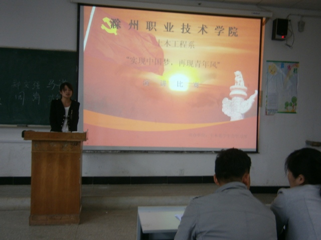 为了深入学习“五四”精神,激发滁州职院学子积极向上、爱党爱国的热情,5月9日,土木工程系举办了“实现中国梦、再现青春风”为题的演讲比赛,共同唱响“中国梦”主旋律,来缅怀与继承五四精神。