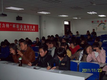 土木系于2011年11月23日星期三在4102举办了职业规划大赛决赛,此次活动由土木系学生会社会市场部承办。中午十二点半正式开始,这次比赛受到全系上下高度重视。系领导一直关注,安排具体辅导员指导,当天的预选赛现场,徐邹影、张锐和赵纯老师到现场点评。
