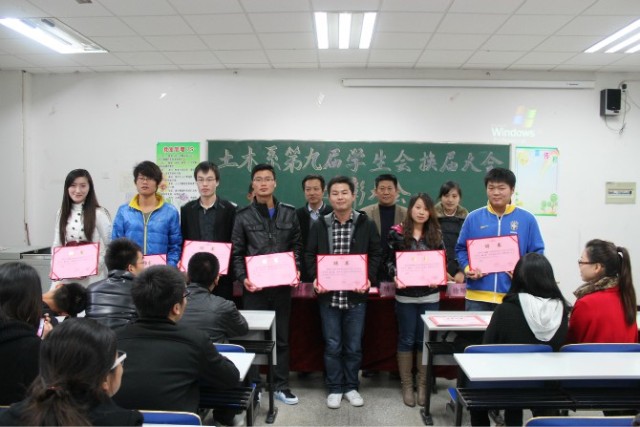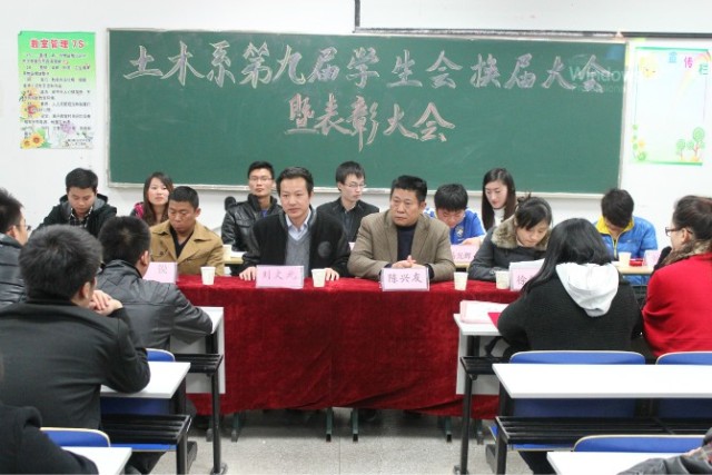 11月14日下午四点整,土木工程系学生会总结暨换届大会于4119教室顺利举行。到场的有土木系党总支书记刘文元、党总支副书记陈兴友、徐邹影老师和张锐老师,以及新成立的第九届学生会全体成员。