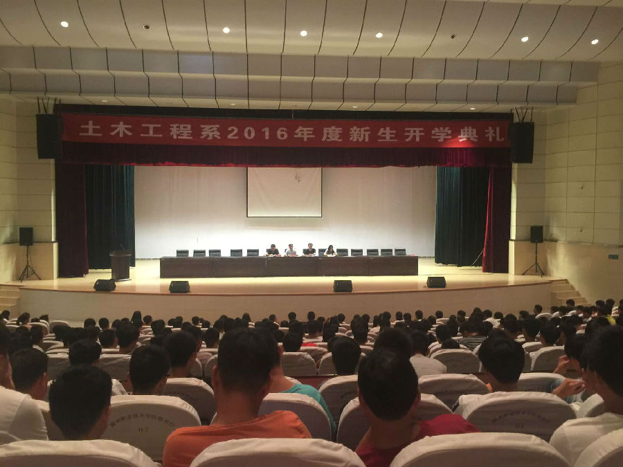 开学典礼随着朱永祥主任的迎新致辞拉开帷幕,朱主任首先给同学们介绍了土木系的系部概况和师资力量,以及我系目前的教学情况和就业现状,介绍了建筑业目前在我省的发展现状行业背景等,希望同学们在大学校园里尽快适应新环境,认识到大学和高中的区别,努力使自己成为一个思想端正、品德高尚、心理健康的优秀的土木学子。随后,分别是老生代表辛海洲和新生代表齐雨萌发言。最后,系书记刘文元发表讲话,他首先代表全系教师和老生们对2016级新生的到来表示欢迎,然后给同学们介绍了大学生活的高中的区别,告诉同学们大学里学习不仅仅通过上课,还包括社会实践、个人能力的锻炼、人际关系的处理、参加活动等等,另外,刘文元还给同学们强调了读书的重要性,介绍了“世界读书日”的由来,提倡同学们多读书、读好书、从书本中学习,自然会提高自己的修养和素质。
