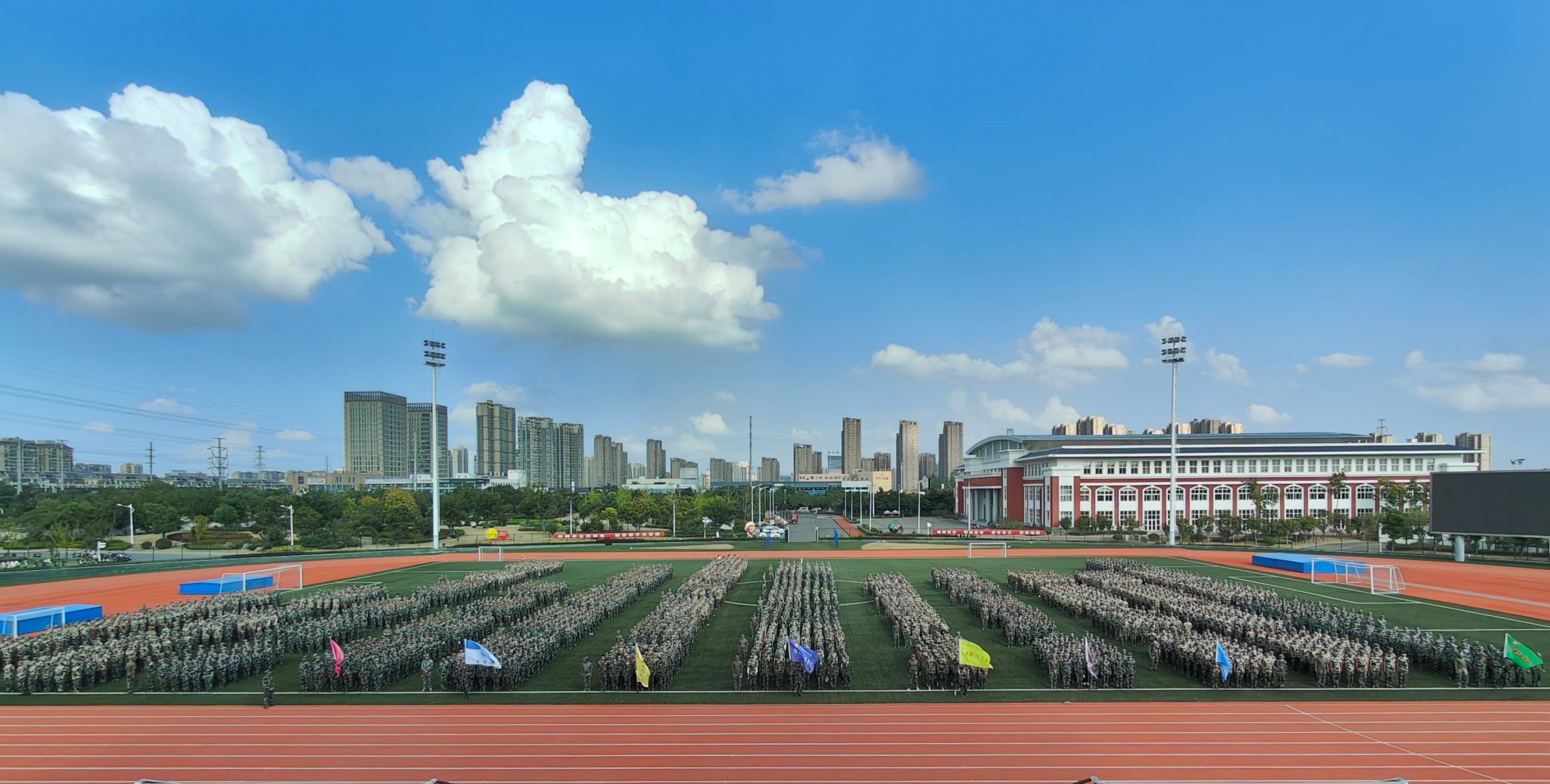 9月7日下午,2022级学生军训圆满结束。在青春与迷彩邂逅的两周时光里,训练有素的戎装学子们,他们身着迷彩服,军姿飒爽、刻苦训练、意气风发,紧听命令与指挥,向一个全新的自己迈进,以崭新的面貌和昂扬的气势谱写大学生涯的华丽篇章。
