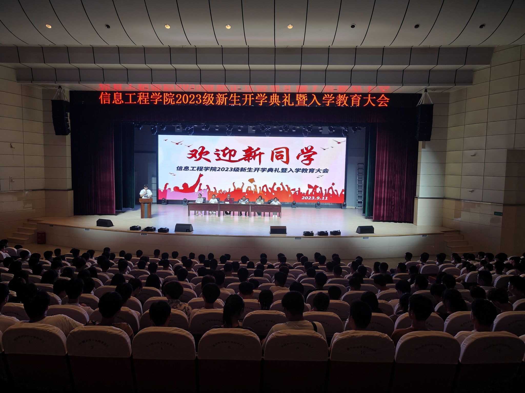 金秋九月,硕果盈枝。9月11日下午,信息工程学院2023级新生开学典礼暨入学教育大会在校大礼堂顺利举行。学院党总支书记程洪斌,院长陈开兵,院党总支副书记杨阳,院团总支书记朱睿,2023级新生辅导员薛玉姣、支欢欢以及全体大一新生参会。大会由杨阳主持。