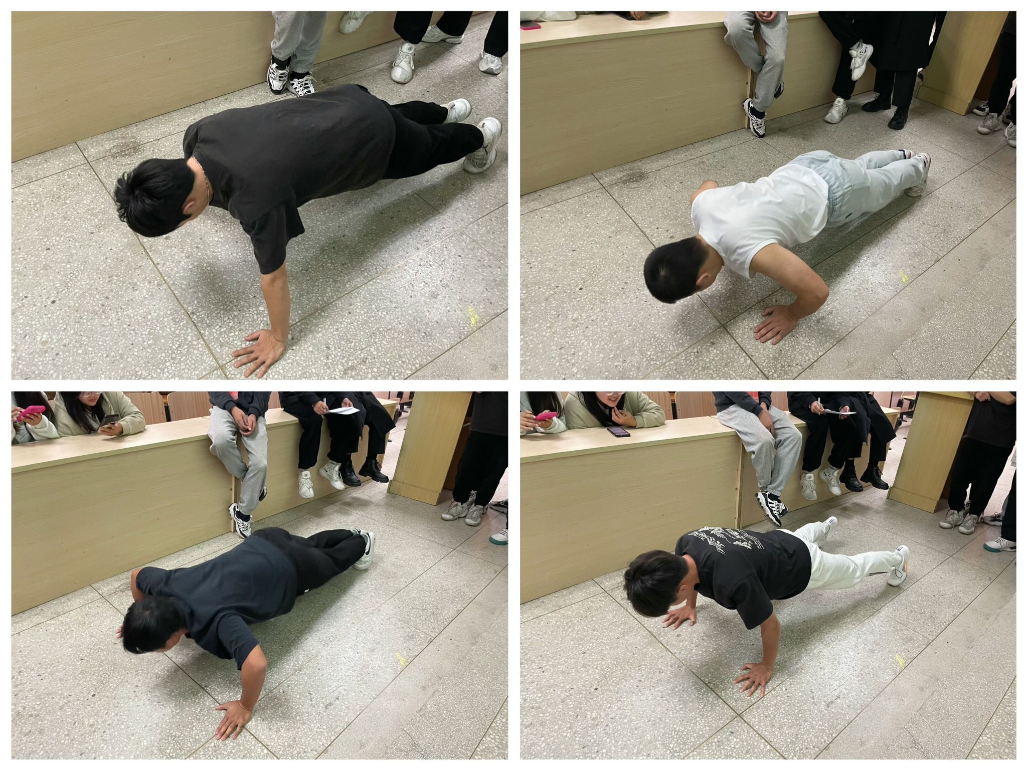 本次竞赛活动共分为个人赛和团体赛两个环节。个人赛采用答题的形式,参赛者通过卷面的形式进行答题,题目涵盖了肺结核的基本知识、传播途径、预防措施等多个方面,经过激烈的角逐,第一轮的个人赛,最终产生了知识竞赛的佼佼者。团体赛则要求参赛队伍在现场进行抢答,旨在考验团队协作能力和手速,参赛者们积极抢答,热情高涨。最后,各个团队抽出一位队员参加俯卧撑比赛,目的是用俯卧进行有氧肺呼吸测试来测试同学们的体质。