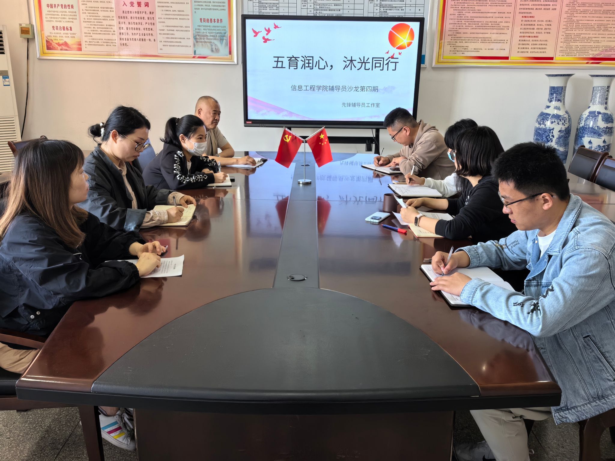 根据“5·25”心理健康宣传月工作安排,5月10日上午,信息工程学院在致善楼会议室以“五育润心 沐光同行”为主题召开了第四期辅导员工作沙龙。活动由党总支副书记杨阳主持,先锋辅导员工作室全体成员参会。
