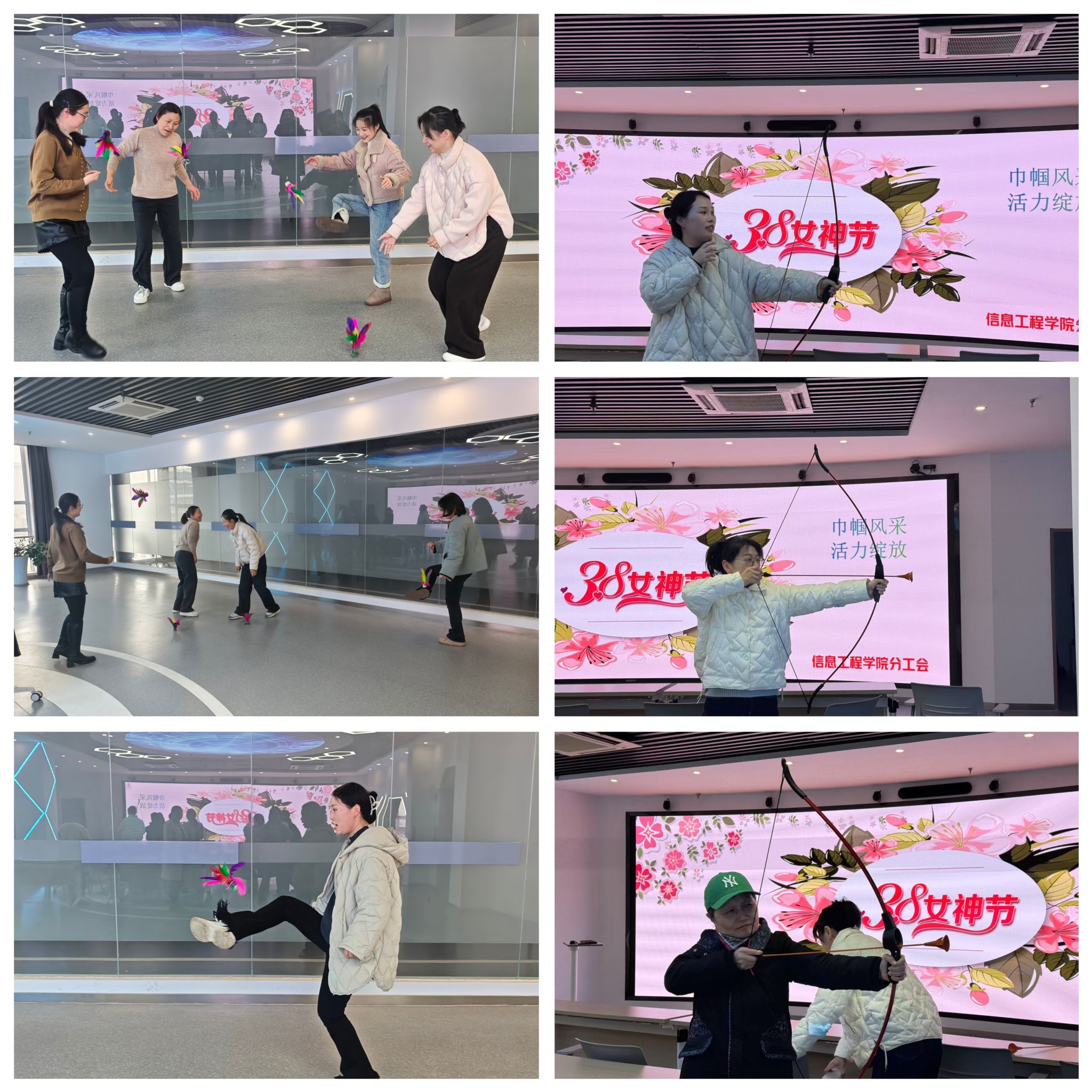 为庆祝第115个“三八”国际妇女节,提高身体素质,愉悦身心,创造健康活泼的工作氛围,信息工程学院分工会于3月12日组织了一场别开生面的趣味活动。本次活动设置两个项目:踢毽子和射箭,信息工程学院全体女教职工热情参与。