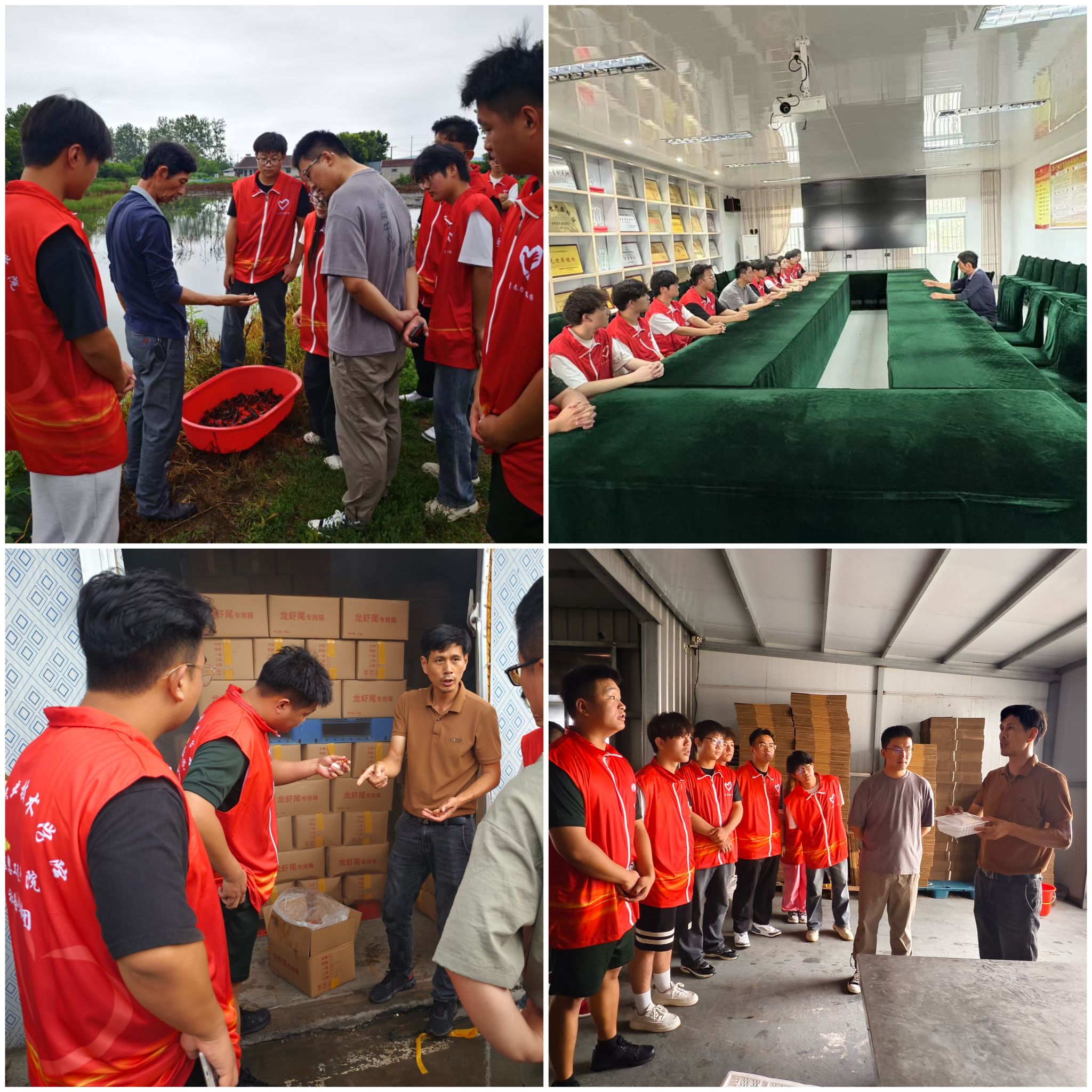 6月27日,实践团队首站来到全椒县二郎口镇曹埠村龙虾养殖基地。在负责人的讲解下,队员们深入千亩虾田,学习“稻虾连作”生态农业模式。队员王逸洋感叹:“传统农业与现代技术结合,实现一田双收,农民的智慧令人敬佩!”