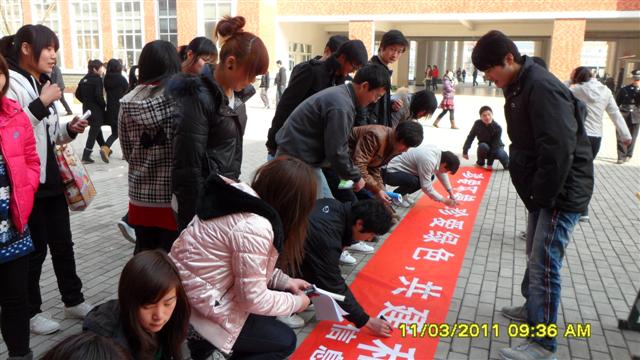 春天已经悄然到来了,万物又呈现出生机勃勃的景象,为迎接2011年的3.12植树节,信息系团总支于3月11日组织了主题签名活动。
