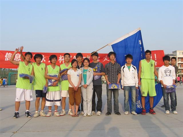 信息工程系“永兴杯”篮球联赛经过两周酣战,终于圆满落下帷幕。上周三下午,冠亚军争夺战激情上演,最终软件技术专业力克对手,夺得冠军,计算机系统维护专业取得亚军,计算机应用专业取得季军。比赛结束后举行了简单而隆重的颁奖仪式,我系团总支书记杨阳老师为所有获奖球队颁发奖品并合影留念。