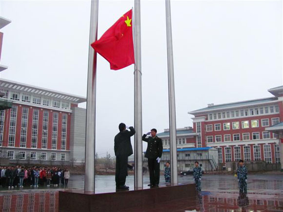 7点30分,在团总支组织委员李慧同学的主持下,升旗仪式准时开始。我系国旗班的旗手们踏着矫健的步伐,以饱满的热情,庄严地护卫五星红旗进场。随后,雄壮有力的《义勇军进行曲》响彻了整个校园,老师和同学们集体行注目礼,全场弥漫着一种庄严肃穆的气息。鲜艳的五星红旗冉冉升起,点燃了大家不断向上的斗志,激发了同学们强烈的爱国热情。