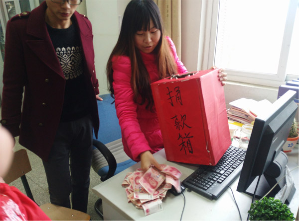 人间有真情,人间有真爱,老师们纷纷伸出援助之手慷慨解囊,在此次的爱心捐款中共筹集5600元人民币,捐款将由信息工程系的老师和学生代表们转交给江坤同学本人。