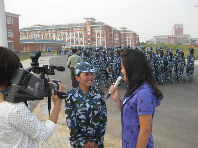 图为计算机协会联合滁州校园网正在对新生军训进行追踪报道