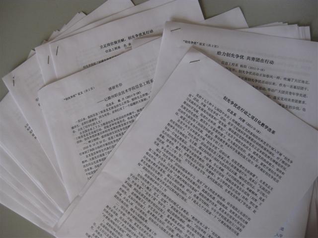 为响应学院关于营造“创先争优在行动”良好的舆论氛围和环境的通知,信息系党总支在全系范围内广泛组织动员党员群众积极参加“创先争优在行动”征文比赛,要求党员同志结合本职岗位,把在创先争优活动中出现的的先进事迹或精神风貌与学习沈浩精神相结合写成论文参与比赛,借此来激励和引导广大党员群众创先争优,使之成为党员群众自我教育和提高的过程。