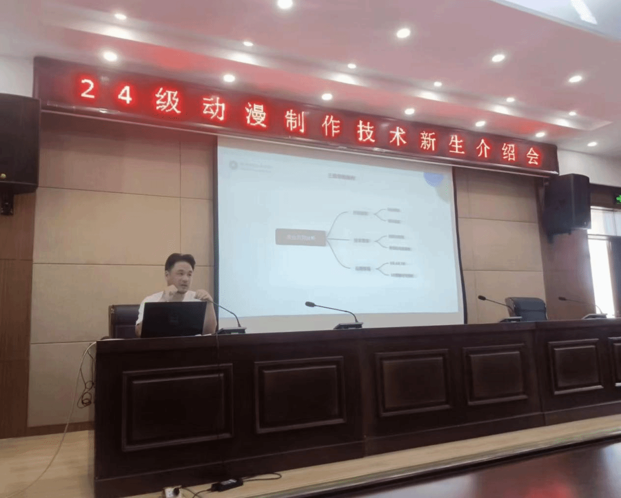 随后,专业教师团队依次上台,分享了各自的研究方向和教学理念,鼓励新生们要敢于创新,勇于实践,将个人对动漫专业的热情投入到课程的学习中。