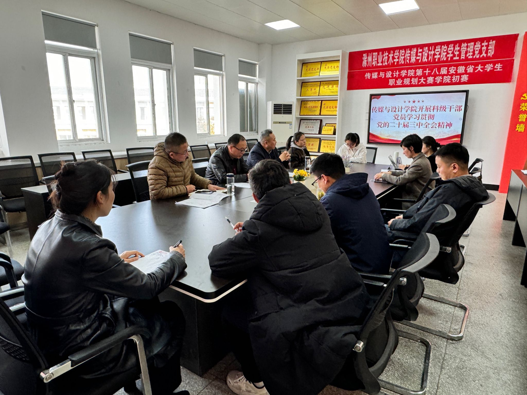 为深入学习贯彻习近平新时代中国特色社会主义思想和党的二十届三中全会精神,深刻认识党的二十届三中全会的重大意义,11月21日上午,传媒与设计学院党总支在德馨楼302会议室开展科级干部、党员学习贯彻党的二十届三中全会精神活动。会议由传媒与设计学院党总支书记王广保主持,传媒与设计学院副院长杨之武担任领学。与会人员包括学院的科级干部及全体党员,大家共同聆听和学习党的二十届三中全会精神。此次会议旨在通过系统学习,提升科级干部和党员的政治素养和理论水平,为学院未来的发展提供坚实的思想保障。