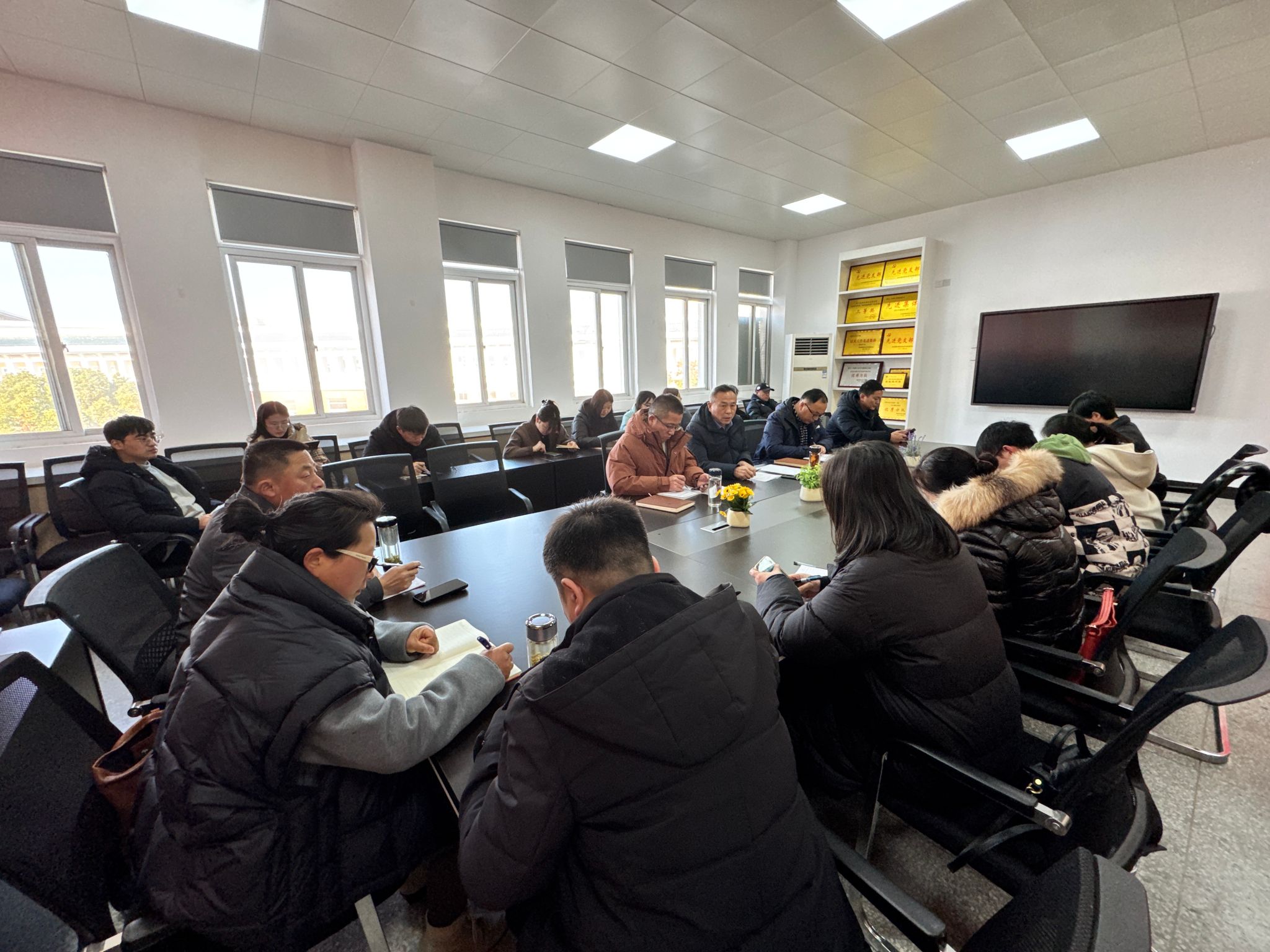 为传达学习习近平总书记考察安徽重要讲话精神,12月16日下午传媒与设计学院在德馨楼302会议室召开全体教职工大会。党总支书记王广保主持会议,全体教职工参加会议。