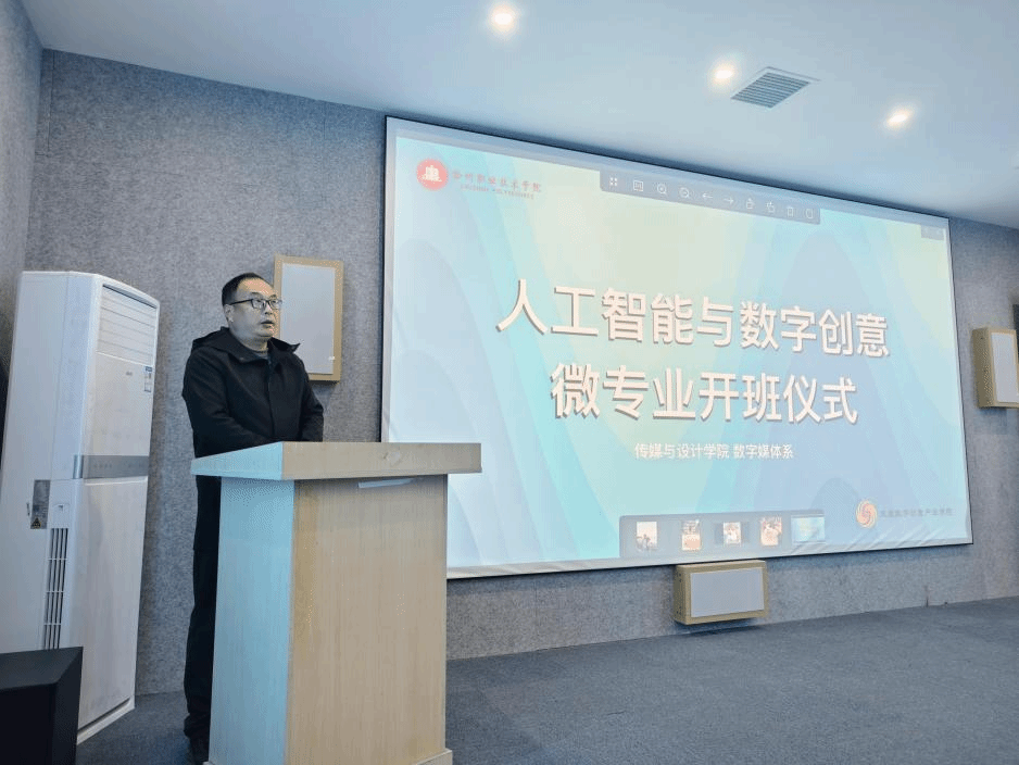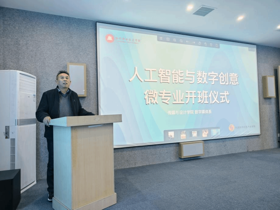 闻建强在开班仪式中对首届参加“人工智能与数字创意”微专业的学生表示热烈的祝贺。同时强调同学们要紧跟时代的潮流,抓住人工智能这把打开未来的钥匙在数字创意行业中发光发亮,实现个人价值的展现。王广保在开班仪式中对学生们表达了祝贺,同时强调安徽省的十大新兴产业中数字创意产业将是充满机遇的未来。希望同学们以人工智能的学习为起点,既做技术的前沿探索者,也做数字创意行业的开拓者。