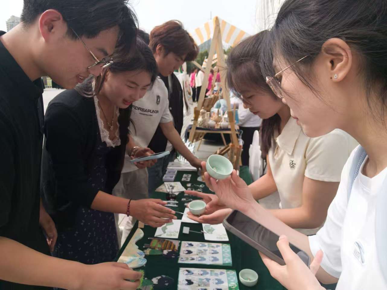 团市委书记、市直相关部门领导参观市集,聆听文创讲解,了解产品背后所蕴含的文化内涵,同Beat365学子亲切交流,并予以好评。本次文创市集引起众多群众驻足围观,市民朋友们对文创产品表现出极大兴趣,经Beat365学子介绍后更是爱不释手。