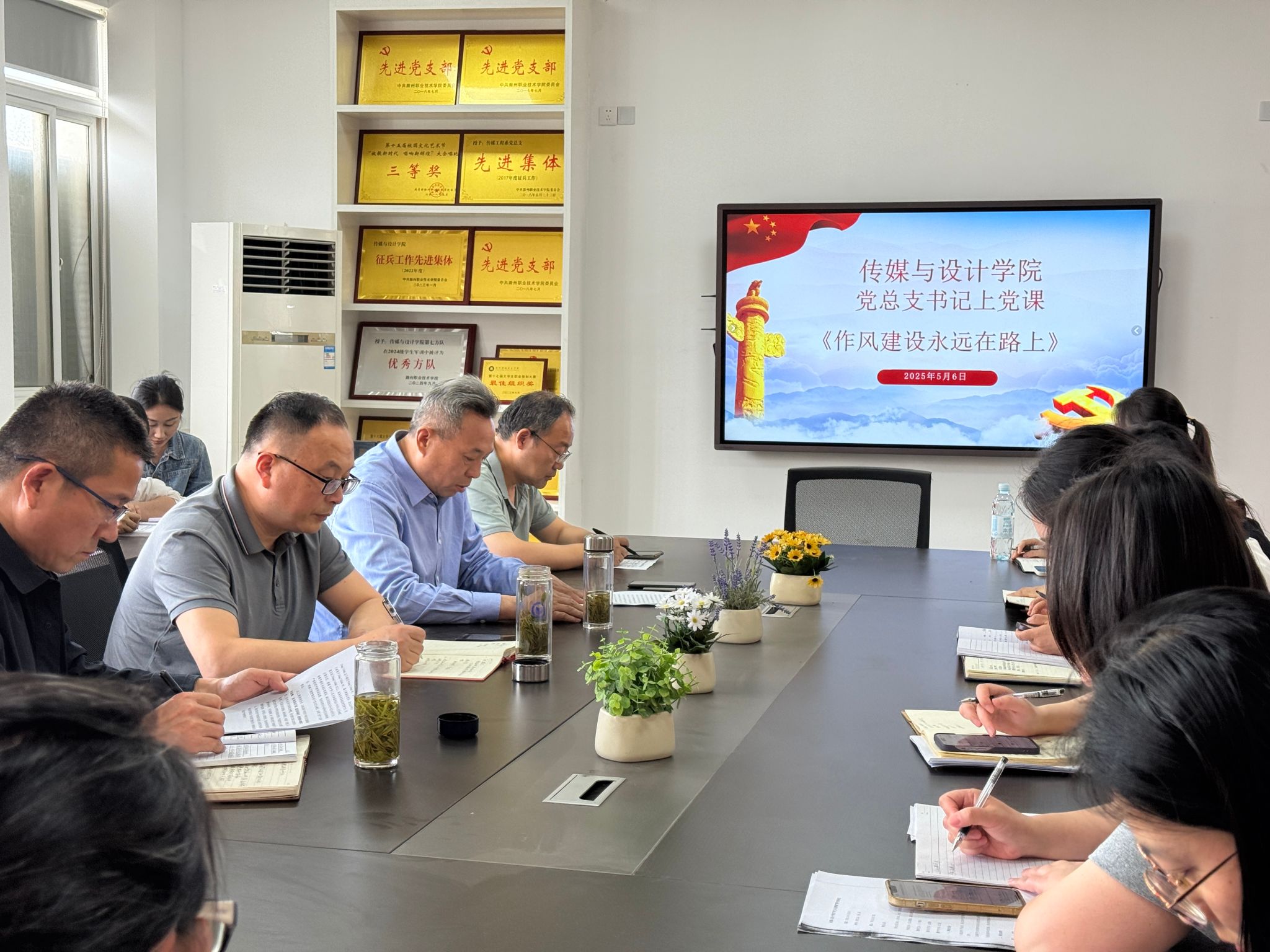5月6日下午,传媒与设计学院在德馨楼会议室开展“廉洁文化润初心 作风建设启新程”专题党课,院党总支书记王广保以《作风建设永远在路上》为题,为全体党员教师、入党积极分子授课。