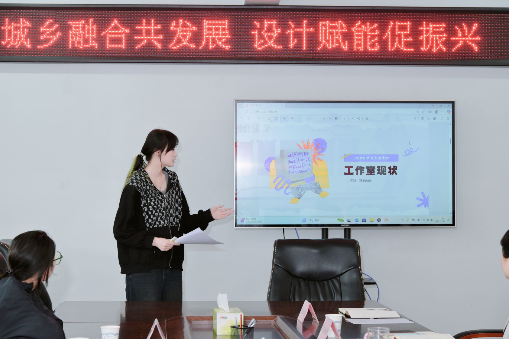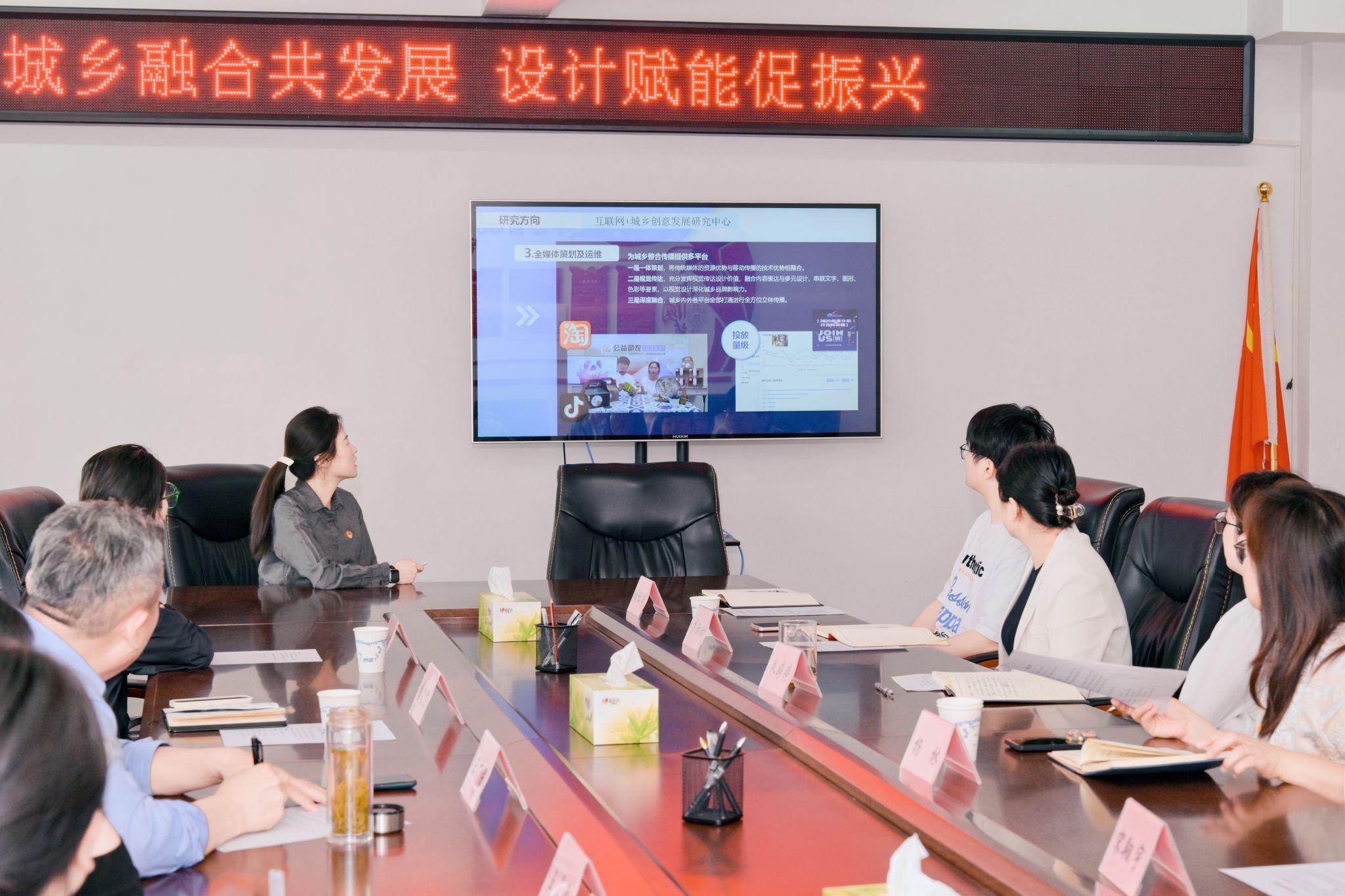 数字媒体系党支部书记李雯雯从城乡新媒体应用开发设计、城乡数字新文创设计及应用和城乡全媒体策划及运维三个方向介绍了近年来围绕城乡创意发展的相关成果。其中联合定远县仓镇开展科技帮扶的项目,完成了仓南村党建品牌手册、推广策划及直播间搭建,助力了农产品推广,具有借鉴意义。通过跨学科融合、技术赋能与社会服务,有效推动了城乡创意发展,成果涵盖学术研究、实践应用及人才培养,为乡村振兴提供了创新范本。