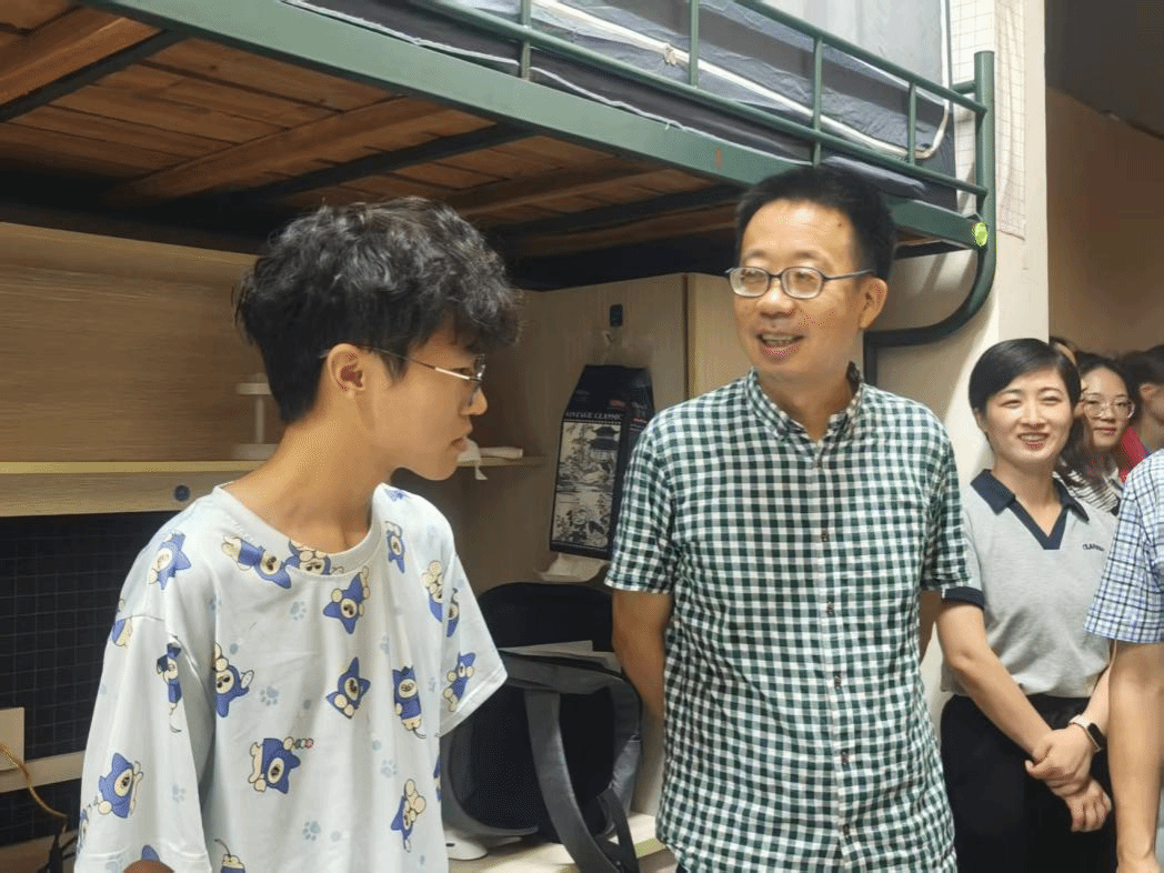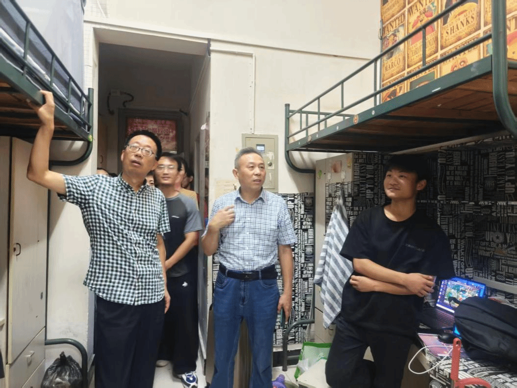 “家乡是哪里的?”“学校的饮食还习惯吗?”“对未来的大学生活有什么规划?”走访过程中,李平权与新生们进行了亲切交谈,细致地询问同学们的生源地、入学感受、住宿饮食等情况,耐心倾听同学们初入大学的所思所感,并对同学们提出的问题给予了现场解答和安排。并勉励新生,要尽快转变角色,适应新的环境和节奏,珍惜大学时光,做好学业规划,打好专业基础;要积极参加校园文化活动,拓宽视野,提升综合素质;要团结室友,互帮互助,营造和谐向上的宿舍氛围。面对校领导无微不至的关怀,新生们放下了最初的拘谨,兴奋地分享了自己对大学的憧憬和专业学习的初步想法。