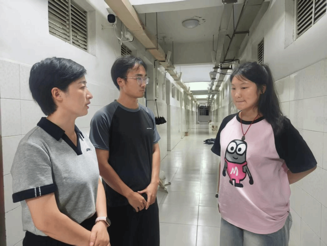 9月7日傍晚,在2025级新生入学伊始,为深入了解新生的入学适应情况,帮助新生更好地融入大学生活,校党委委员、工会主席李平权、传媒与设计学院党总支书记王广保、2025级新生辅导员等一行,深入传媒与设计学院新生宿舍,与同学们面对面交流,送上学校的亲切关怀与暖心问候。