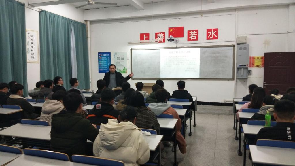 2018年12月19日下午,传媒工程系于德馨楼102教室开展期末书记讲规活动,此次讲规由传媒系党总支书记王广保主讲,传媒系团总支学生会全体干部干事参与。