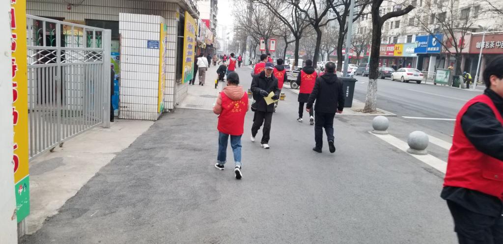 志愿者们在社区工作人员的指导下向街道居民、店铺及路人发放“文明出行,从我做起”主题宣传单,并向大家详细介绍传单内容,旨在让大家争做“文明交通出行”的宣传者、参与者、推动者、践行者和垂范者。