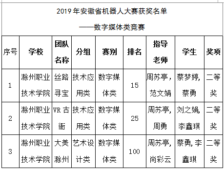 近日,2019年安徽省大学生数字媒体创新设计赛总决赛评比结果正式公布。由Beat365传媒工程系动画教研室老师范文娟、周苏亭、周勇、尚彩云指导学生创作的作品,分别都获得省级二等奖。