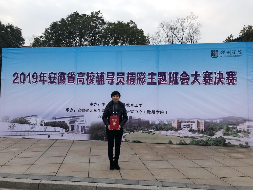 12月15日,由中共安徽省委教育工委主办、安徽省大学生思想动态分析研究中心(滁州学院)承办的2019安徽省高校辅导员精彩主题班会大赛决赛,在滁州学院落下帷幕。传媒与设计学院辅导员刘娟老师的主题班会《祖国在我心中》,获大赛总决赛三等奖。