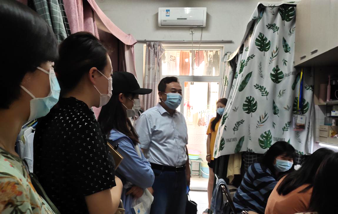 为严格落实学校疫情防控期间师生返校工作部署,增强学生疫情防控意识。5月21日上午,传媒与设计学院党总支书记王广保带领18级学生辅导员一行深入学生寝室,走访学生宿舍,实地查看了关于学生封闭管理期间的各项安排,并与学生进行了亲切的交流。