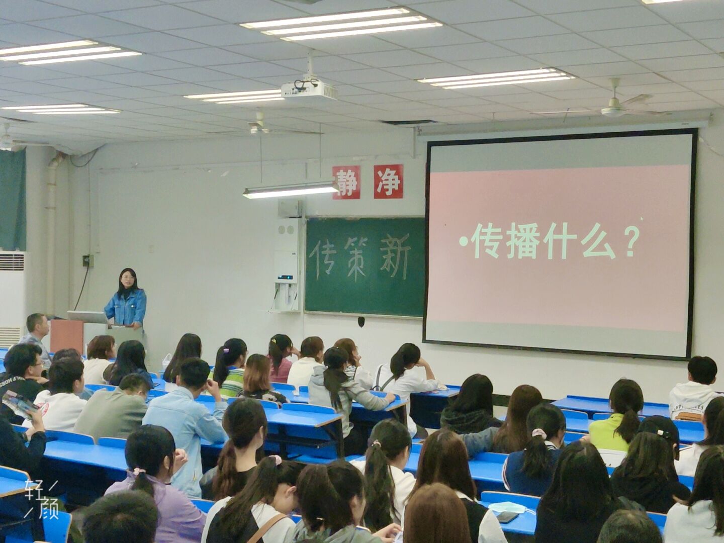 在互动环节,专业会还邀请了18级传策专业的毕业生夏文祝和19级正在读大二的学姐赵梦,与大家分享了校园生活、学习心得和竞赛感言,诙谐幽默的交流和与互问互答,令介绍会现场掀起了一个个高潮。