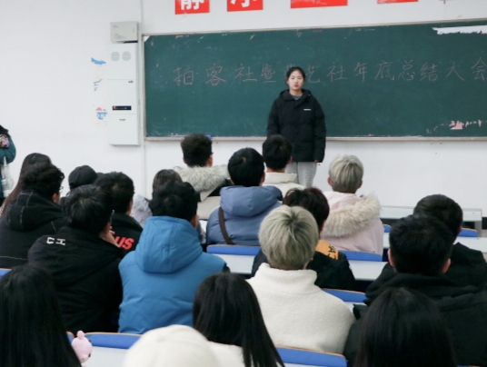 会议首先由拍客社社长李雪纯发表讲话,她讲到,丰富多彩的社团活动使学生综合能力得到了进一步提升,开阔了眼界、陶冶了情操。而后蓝艺社社长李启明讲到在社团里不仅有学生的热情和努力,更有社团老师的无私奉献。最后两个社团社长就本学期所开展的社团活动和社团工作做了详细的总结,并就明年的社团活动做了合理且精彩的规划。
