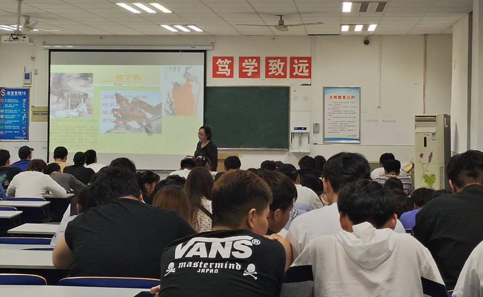 史老师先从灵璧三绝——钟馗画、灵璧石和虞姬墓引入,接着对钟馗画产生的背景、钟馗画的艺术价值、钟馗画的起源与发展、特色以及独特的审美功能、表现技法进行了详细解读,最后史老师带领同学们一起吟颂了西楚霸王项羽的一首充满豪气和情感的诗——《垓下歌》。